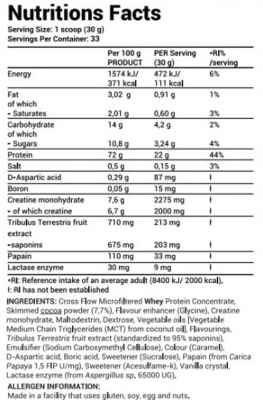 This vanilla-flavoured powder mixes easily with water or milk, delivering a smooth, creamy taste. It can be consumed before or after workouts, or at any time of day, making it a versatile addition to daily nutrition plans.